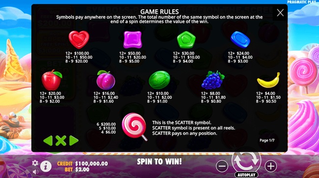 The Scatter payout system is a signature element of the game. When you collect four lollipop (scatter) symbols, you unlock 10 free spins. The more scatters you land, the more free spins you get.